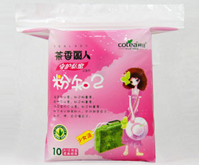 廈門柯佳衛(wèi)生用品有限公司旗下的茶香麗人衛(wèi)生巾,柔軟舒適,是專門針對少女研發(fā)設(shè)計(jì)的。本品運(yùn)用尖端科技導(dǎo)入茶工藝層,具有消炎、抗菌、抗氧化功能,還有消毒除臭、促進(jìn)人體新陳代謝,提高人體免疫能力,增強(qiáng)人體肌能等理療功能,純天然呵護(hù)、更舒適。