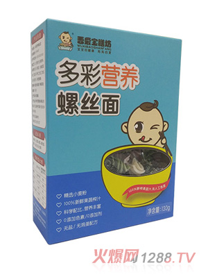 吾愛寶膳坊多彩營養(yǎng)面所有產(chǎn)品均為新鮮果汁和面,經(jīng)手工或機械化精制而成,無鹽無色素、無添加無防腐劑,真正健康的寶寶輔食,營養(yǎng)面在健康的前提下還做到造型卡通、色彩誘人、能解決寶寶們不愛吃飯、不吃蔬菜、挑食的難題,補充孩子必需的維生素及人體所需的微量元素。