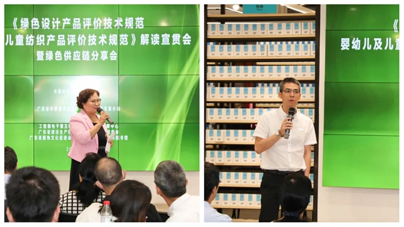 會(huì)上邀請(qǐng)了工業(yè)和信息化部電子第五研究所姜濤主任作了《綠色設(shè)計(jì)產(chǎn)品及其評(píng)價(jià)技術(shù)規(guī)范編制意義》主題發(fā)言,闡述了制定嬰幼兒童裝綠標(biāo)的背景、意義,綠色設(shè)計(jì)對(duì)產(chǎn)品全生命周期的影響,通過(guò)對(duì)產(chǎn)品標(biāo)準(zhǔn)評(píng)價(jià)可以將市場(chǎng)產(chǎn)品優(yōu)劣識(shí)別出來(lái),企業(yè)通過(guò)評(píng)價(jià)發(fā)現(xiàn)不足改進(jìn)提高,接下來(lái)要開(kāi)展綠色童裝產(chǎn)品評(píng)定認(rèn)證的工作。
