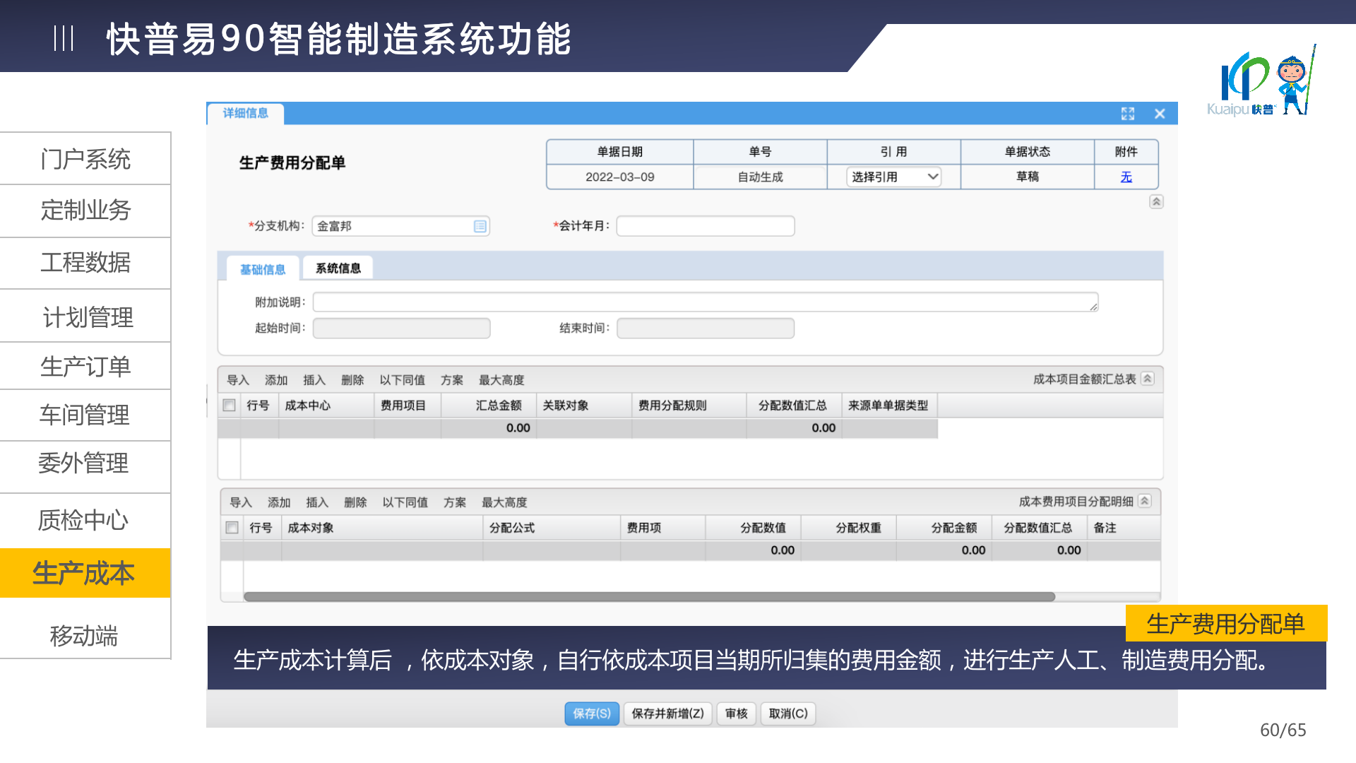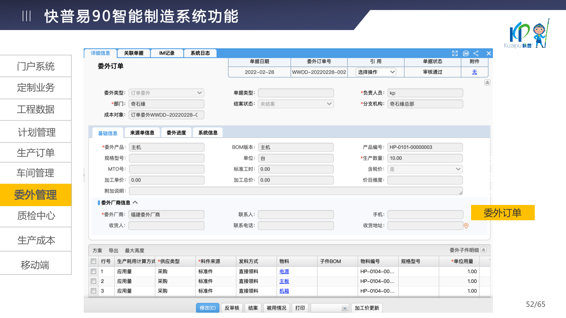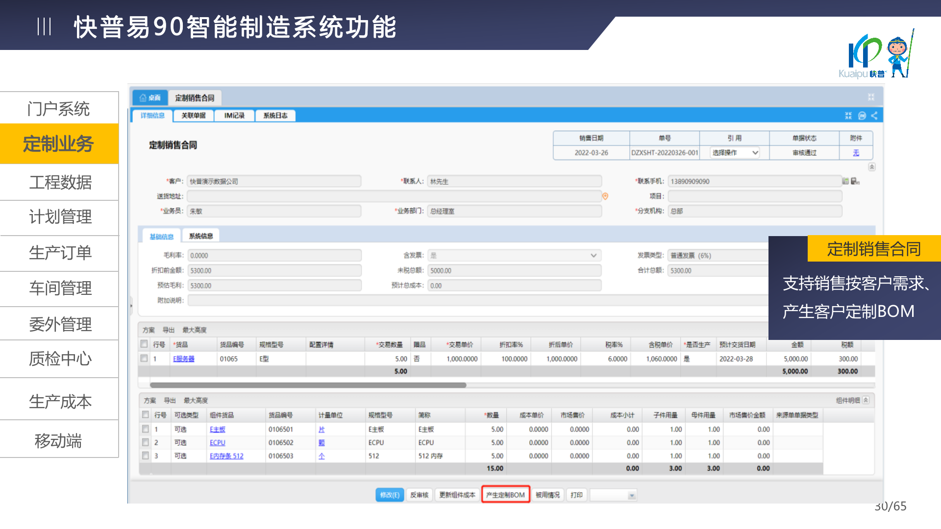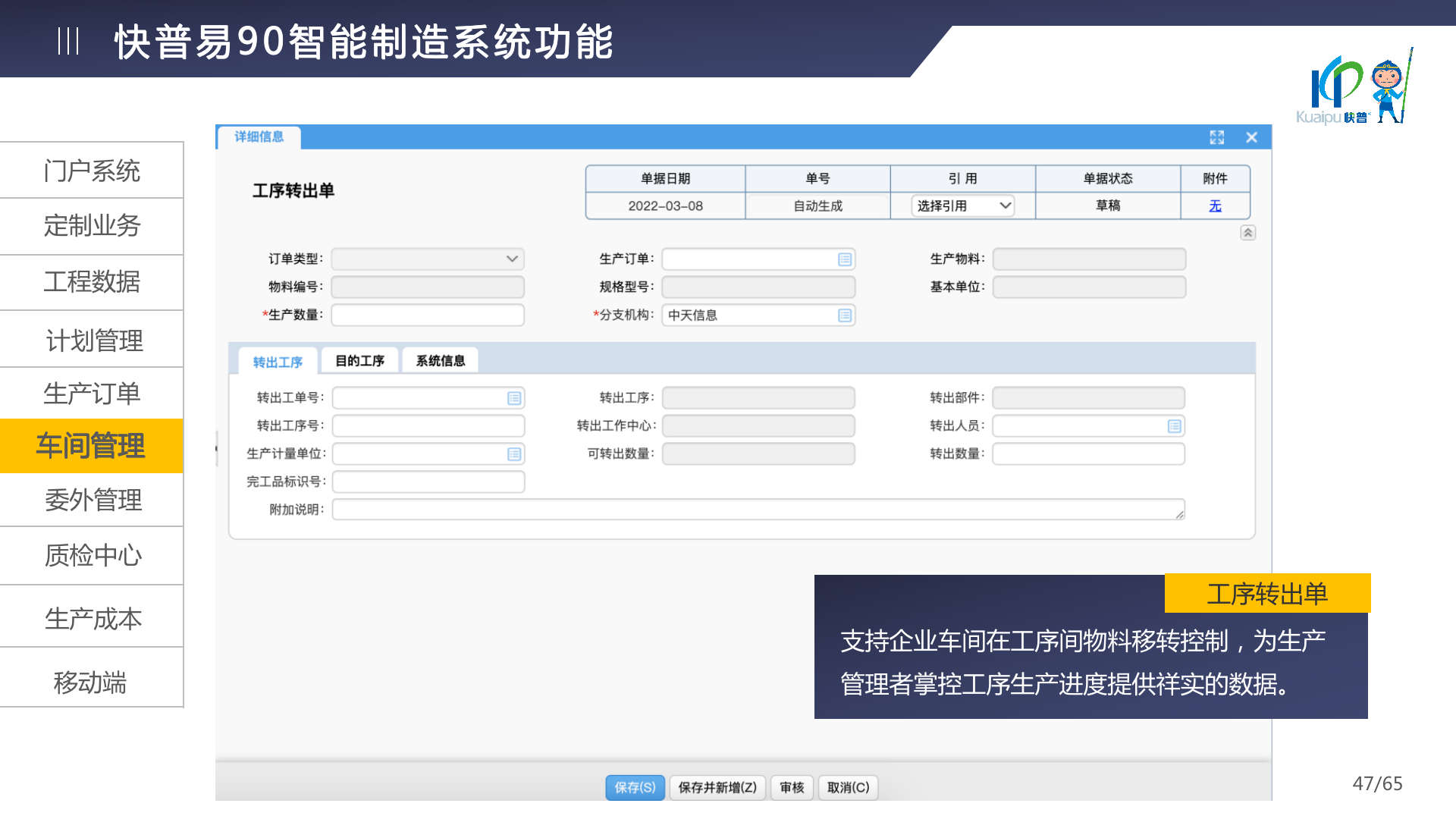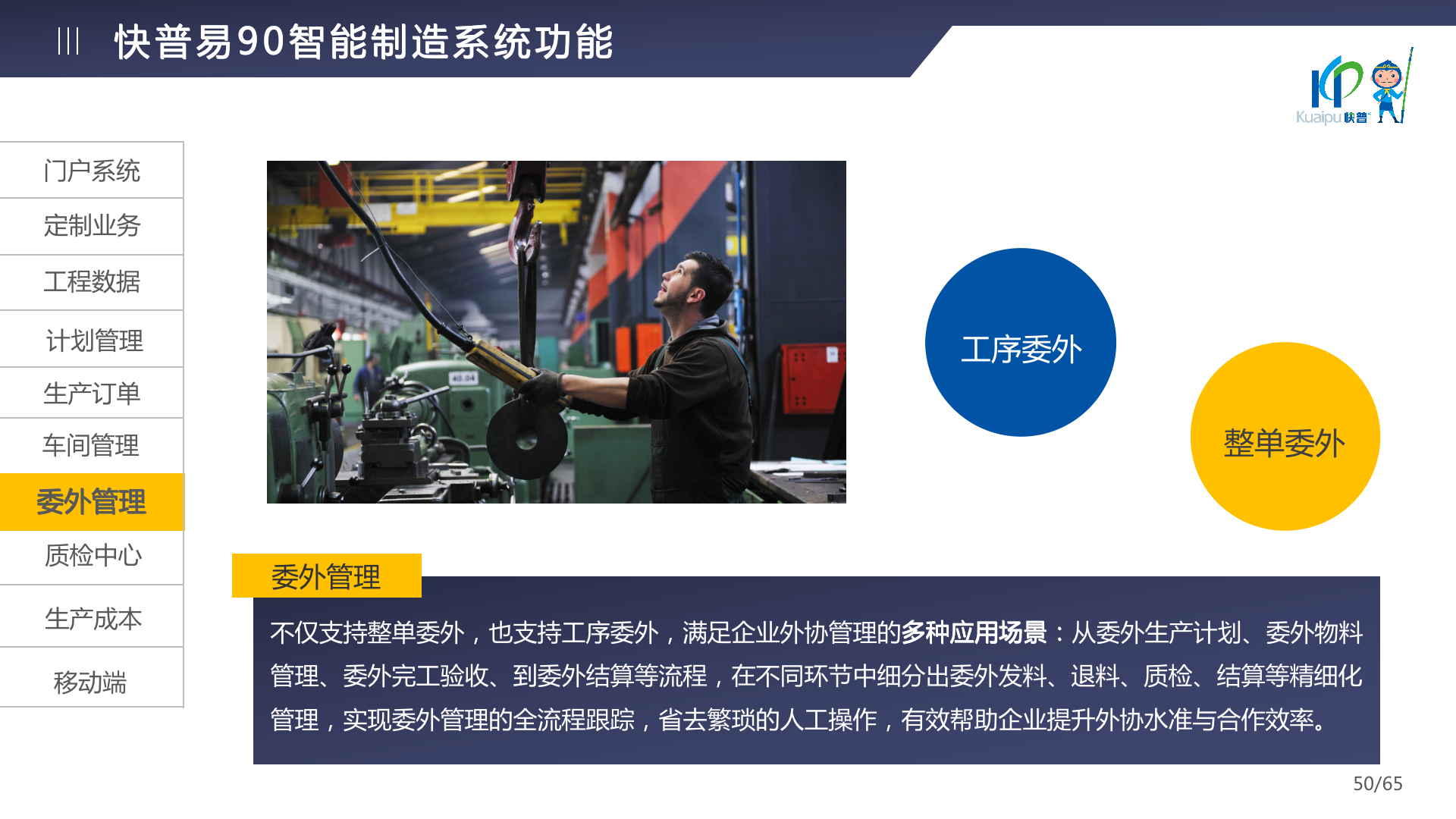 快普易90融合了大量精益生產(chǎn)管理的經(jīng)驗(yàn),涵蓋計(jì)劃管理、BOM管理、MRP運(yùn)算、生產(chǎn)訂單管理、供應(yīng)鏈管理、車間管理、出入庫(kù)管理、委外管理、質(zhì)量管理、生產(chǎn)成本核算、報(bào)表分析等全面生產(chǎn)管理,為企業(yè)打造實(shí)時(shí)感知變化、分析變化、提供決策的數(shù)字化管理平臺(tái),推動(dòng)企業(yè)創(chuàng)新的管理,實(shí)現(xiàn)“智能制造”的數(shù)字化轉(zhuǎn)型。
